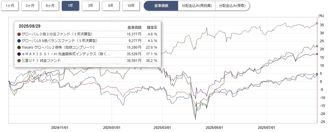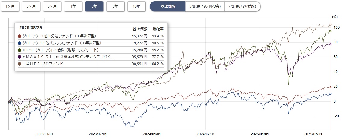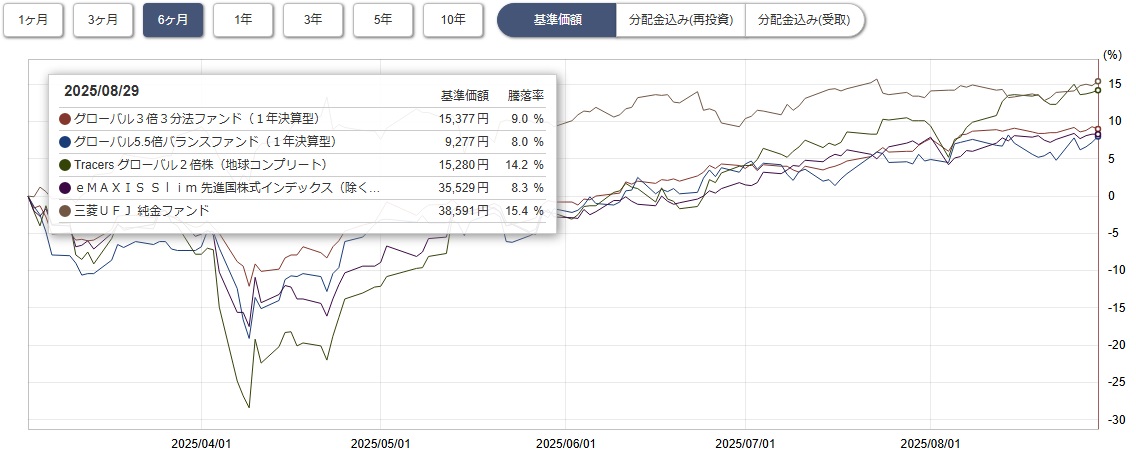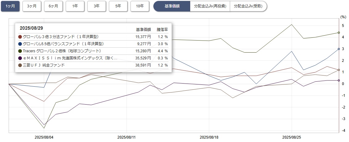 今回は、グローバル5.5倍バランスファンドの姉妹ファンド比較分析2025年8月のお話。